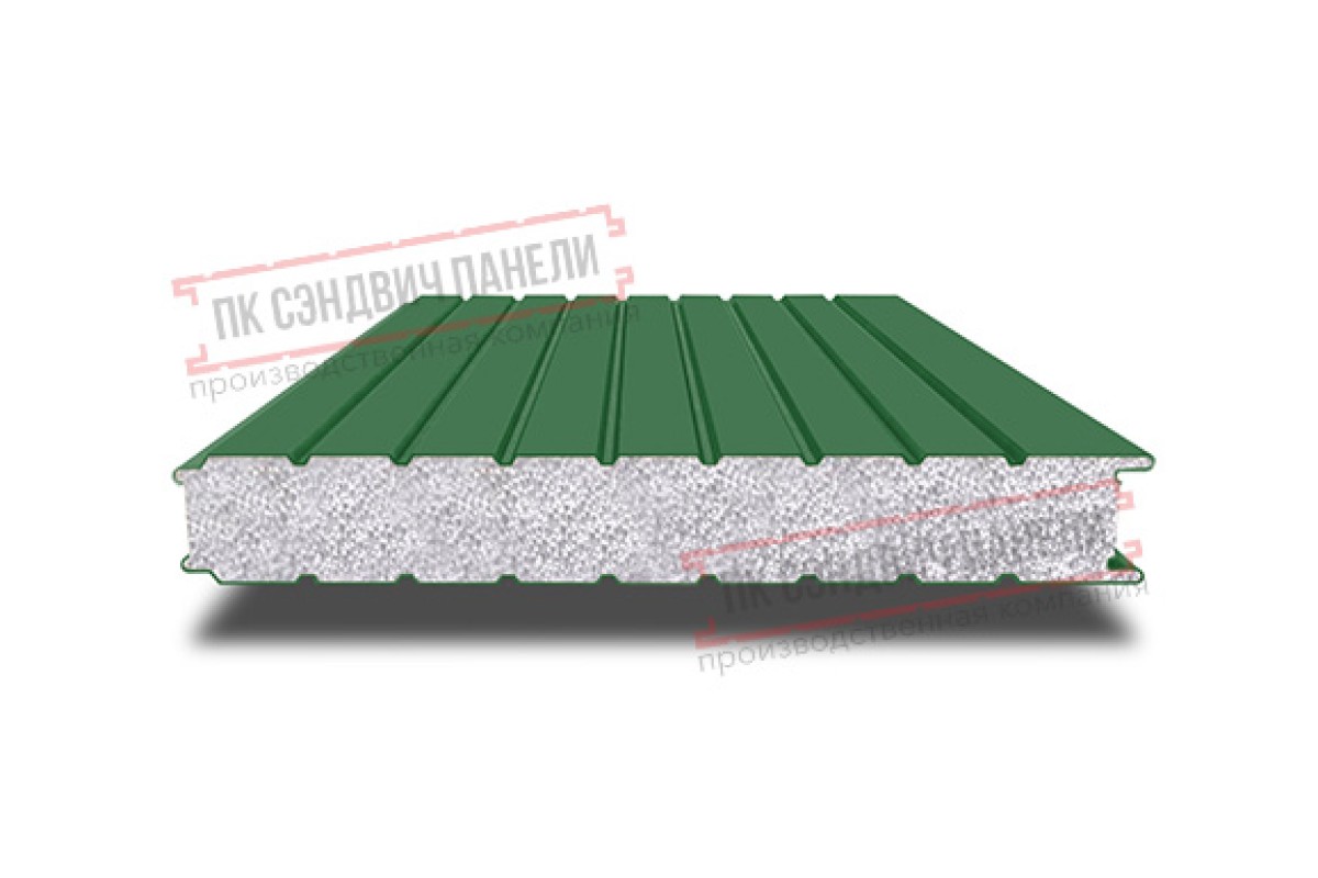 Купить сэндвич панели стеновые с пенополистиролом, ширина 1200 мм, толщина 120 мм, 0.5/0.5, RAL6002 качественно и недорого по цене производителя.