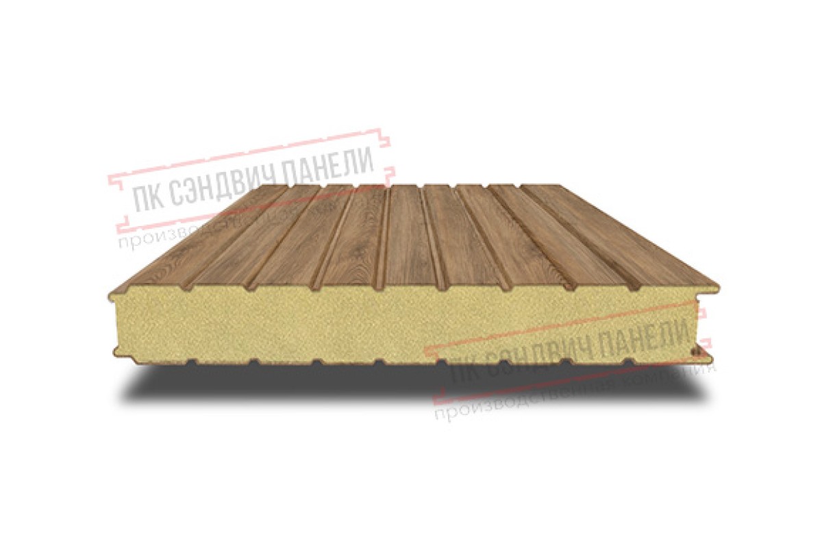 Купить сэндвич панели стеновые с пенополистиролом, ширина 1200 мм, толщина 100 мм, 0.5/0.5, дуб античный с гарантией качества оптом и в розницу.