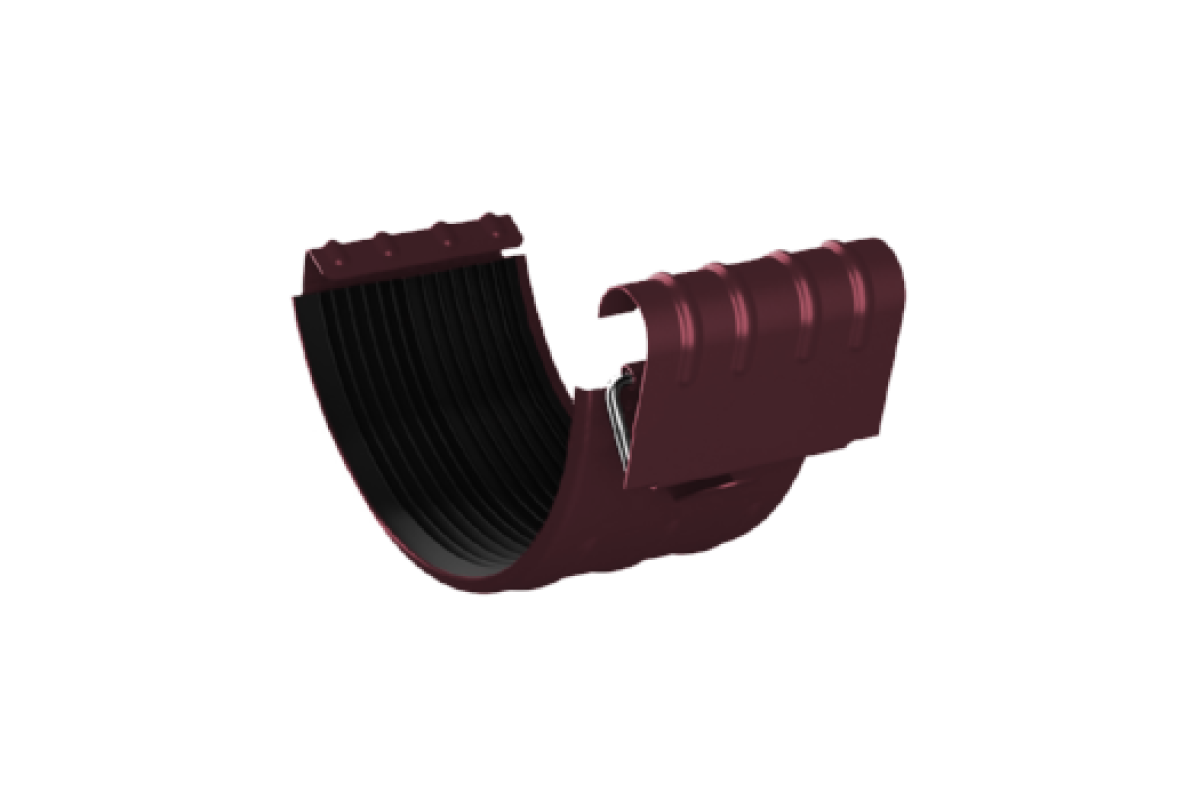 Металлическая система водоотвода Соединитель желоба D150 (ПЛД-02-3005-0.6) изготовлена из стали промышленной оцинковки толщиной 0.6 мм. В качестве защитного барьера от солнечной радиации, механических повреждений, влаги применено покрытие Пластизол двусторонний. Такая система подходит как для частного домостроения, так и для промышленных зданий. Она долговечна, экономична и легко монтируется.