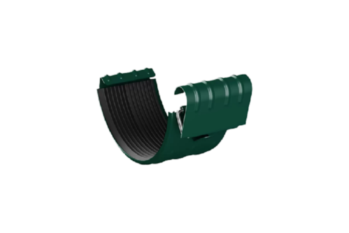 Металлическая система водоотвода Соединитель желоба D150 (ПЛД-02-6005-1) сделана из стали машинной оцинковки 1 мм толщиной. В качестве защитного барьера от осадков, механических повреждений, ультрафиолета применено покрытие Пластизол двусторонний. Такая система подходит как для частного домостроения, так и для промышленных зданий. Она долговечна, экономична и легко устанавливается.