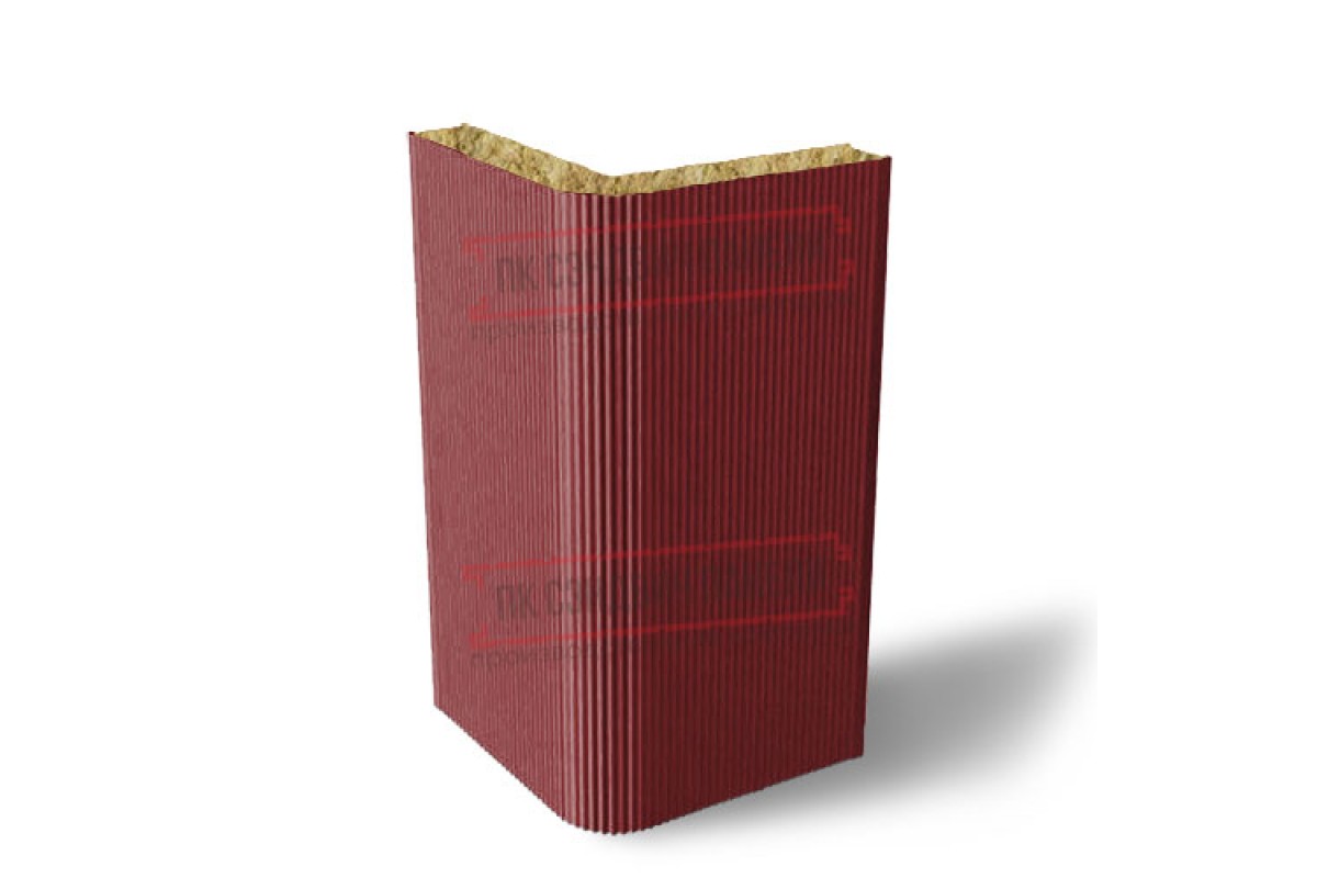 Купить угловую сэндвич-панель вертикальную из минеральной ваты, 0.5/0.5, ширина 1000 мм, толщина 50 мм, RAL3011 гарантированно по доступной цене с любой формой оплаты.