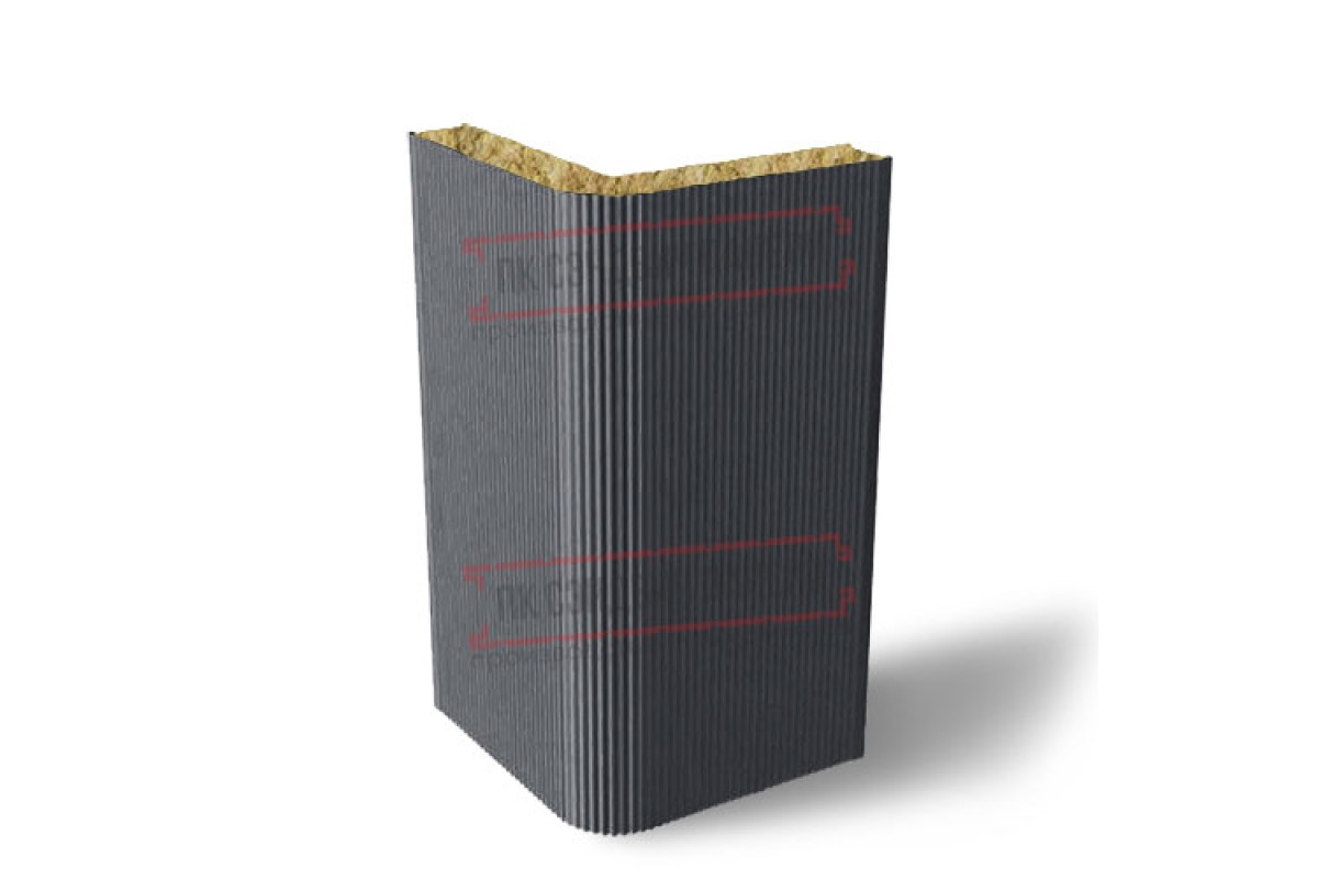 Купить угловую сэндвич-панель вертикальная из минеральной ваты, 0.5/0.5, ширина 1200 мм, толщина 40 мм, RAL7024 по наиболее выгодной цене оптом и в розницу.