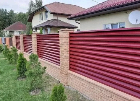 - экономичность — металлический забор-жалюзи обойдется дешевле кирпичного.