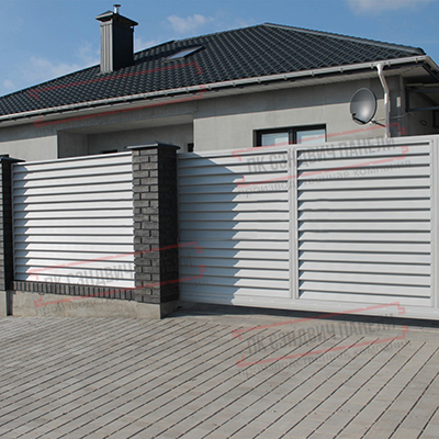 - эффектный внешний вид — ограждение жалюзи выглядит современно, стильно, сочетается с постройками с любым экстерьером и легко вписывается в разные ландшафты;
