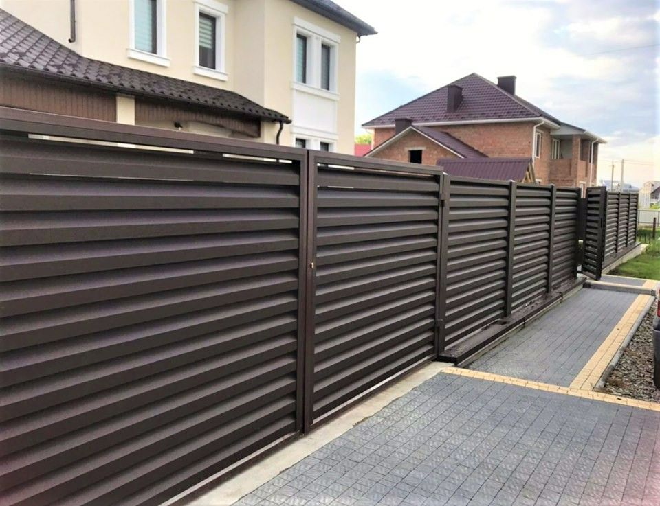 Заборы-жалюзи являются отличной альтернативой сплошным заборам, так как в отличие от них обеспечивают продуваемость и в то же время ограничивают видимость участка.