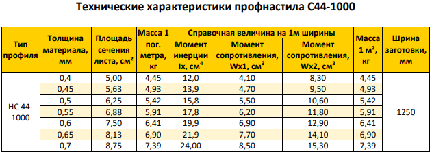Профнастил С-44 — размеры и технические характеристики