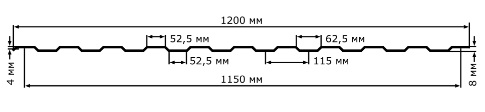 У стенового профлиста С8 вид волны только трапециевидной формы.
